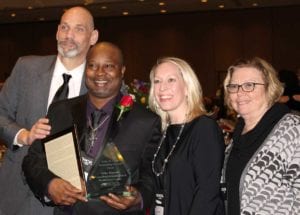 Greensboro, NC, February 25, 2020 – Mike Murrell, Cook Supervisor at Crystal Bluffs Rehabilitation and Health Care Center, received the Riley W. Clapp award for outstanding service in a non-nursing discipline at the North Carolina Health Care Facilities Association (NCHCFA) Annual Awards Program held in Greensboro, NC on Monday, February 24, 2020. Each year NCHCFA acknowledges front line personnel who have demonstrated outstanding achievements in long term care. Mike is an employee of Culinary Services Group, the contract foodservice provider at Crystal Bluffs.