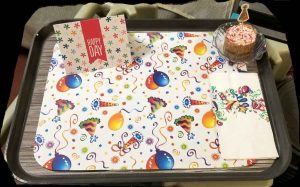 Holidays can be especially hard for seniors right now. That’s why for special events, like birthdays or holidays, our team outfits food trays with themed decorations to make the resident feel special.